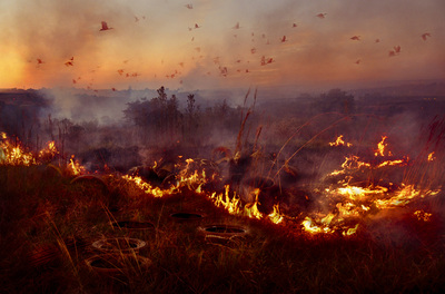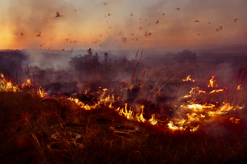 The photography for the art works were taken on various urban and nuclear wastelands, landfill sites in South Africa and certain natural landscapes susceptible to veld fires and habitual regrowth. Transforming naturally challenging environments into surreal and imaginary worlds, I attempt to bring harsh places to the human ecological subconscious.